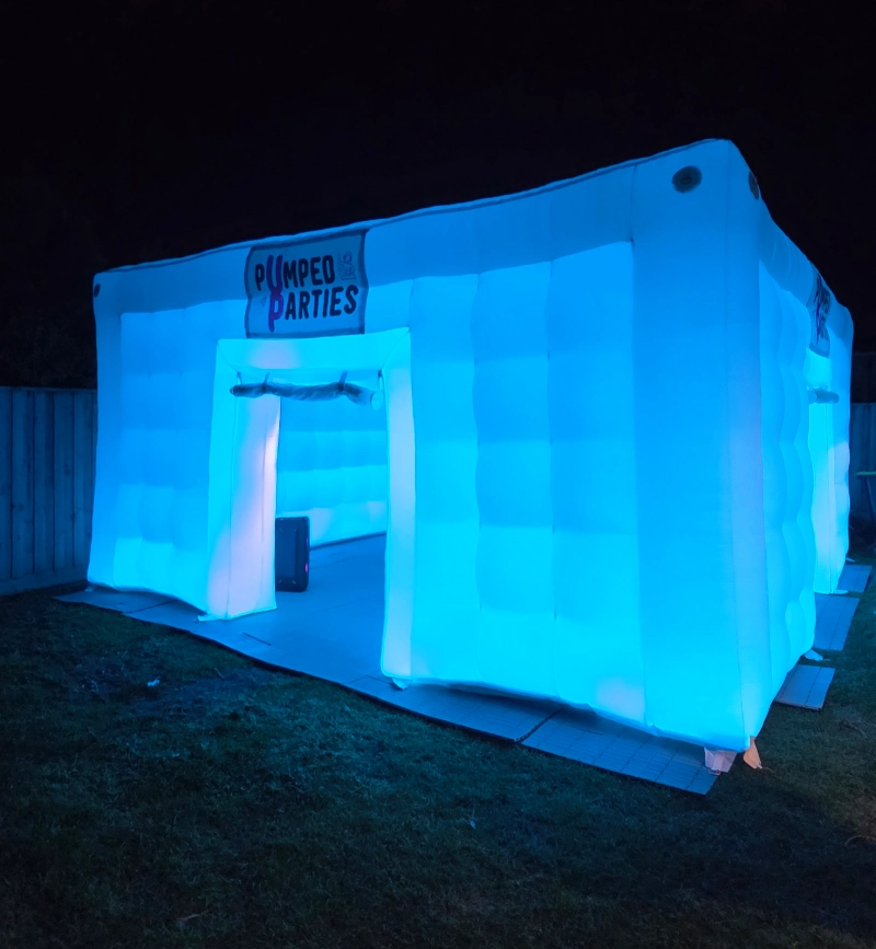 The Cube is our latest showstopper — a custom-made, 6x6m white inflatable marquee lit with vibrant LED lights. Designed to turn heads and elevate any celebration, it’s the perfect fit for everything from kids’ discos to milestone birthdays and late-night dance floors.